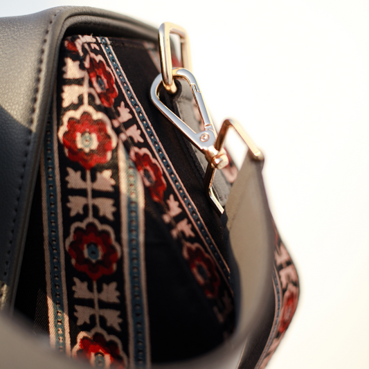 Floral Black Edgebox - Rectangular Kutchi Handcrafted Bag